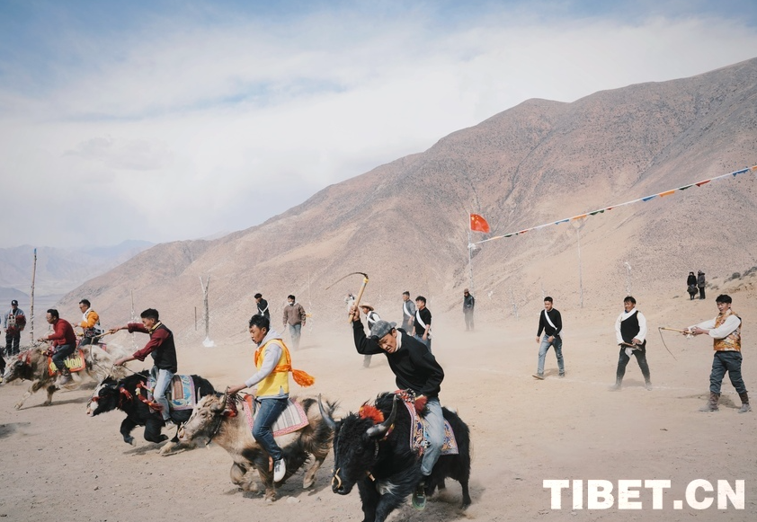 Neulich wehten im Dorf Chag der Gemeinde Zangdog im Stadtbezirk Dagzê von Lhasa bunte Fahnen, und die Menschenmenge tobte. Ein traditionelles Yak-Rennen mit starkem Volksgruppen-Charakter fand in einer lebhaften Atmosphäre statt und steigerte die festliche Stimmung des tibetischen Neujahrs weiter. An diesem Wettbewerb nahmen insgesamt mehr als 20 Yaks und über 20 Teilnehmer teil, die aus dem Dorf Chag und den umliegenden Nachbardörfern stammten. Alle waren in farbenfrohen, exquisiten und schönen tibetischen Festtagstrachten gekleidet, wirkten energiegeladen und hochmotiviert. Auch die teilnehmenden Yaks waren herausgeputzt: Ihre Hörner waren mit bunten Seidenbändern geschmückt, ihre Körper mit Schmuck behangen, und sie traten stolz und selbstbewusst auf dem Wettkampfplatz auf. Das Yak-Rennen als traditionelle tibetische Volksaktivität zeigt sowohl die Besonderheiten der Agrar- und Nomadenkultur als auch bereichert das kulturelle Leben der Bevölkerung an Feiertagen. Es veranschaulicht anschaulich die fröhliche, harmonische und aufstrebende Atmosphäre der Dörfer in der neuen Ära.
