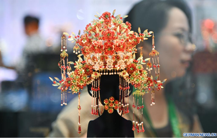 Dieses am 15. April 2026 aufgenommene Foto zeigt Figuren im chinesischen Stil auf der sechsten China International Consumer Products Expo (CICPE) in Haikou in der südchinesischen Provinz Hainan. Von Fertigkeiten des immateriellen Kulturerbes bis hin zum originellen geistigen Eigentum (IP) mit traditionellen chinesischen kulturellen Merkmalen - chinesische Marken verbinden Tradition mit Moderne und präsentieren ihren Charme auf der laufenden CICPE und ziehen die Aufmerksamkeit vieler Besucher auf sich.