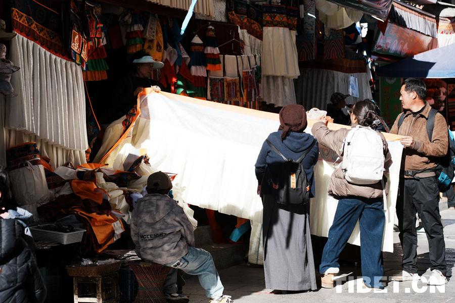 Am 7. Februar, mit der Annäherung des Frühlingsfestes und des tibetischen Neujahrs, wimmelte es in den Straßen Lhasas nur so von Menschen. An Orten wie der Barkhor-Straße und dem Barkhor-Einkaufszentrum strömten Lhasas Bürger in ununterbrochener Folge herbei, um Neujahrswaren zu kaufen, wobei sowohl Kauf als auch Verkauf blühten und eine festliche und harmonische Atmosphäre vorherrschte.