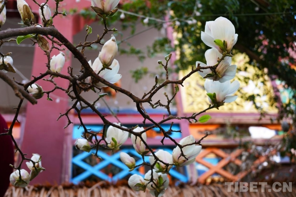 In diesem Frühling begegneten wir in Lhasa einem Baum voller Yulan-Magnolien, die sich unter dem Hochlandslicht in voller Pracht entfalteten. Weiße Blütenkelche schmücken dicht an dicht die Zweige. In dem Café unter dem Baum sitzen Bürgerinnen und Bürger gemütlich zusammen, plaudern oder ruhen sich am Fenster aus und genießen diese friedvolle Frühlingszeit.