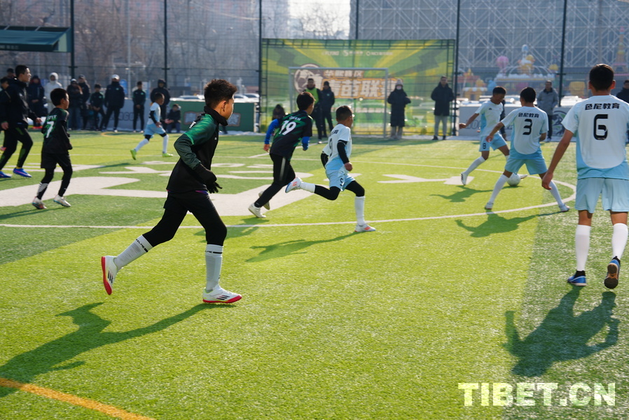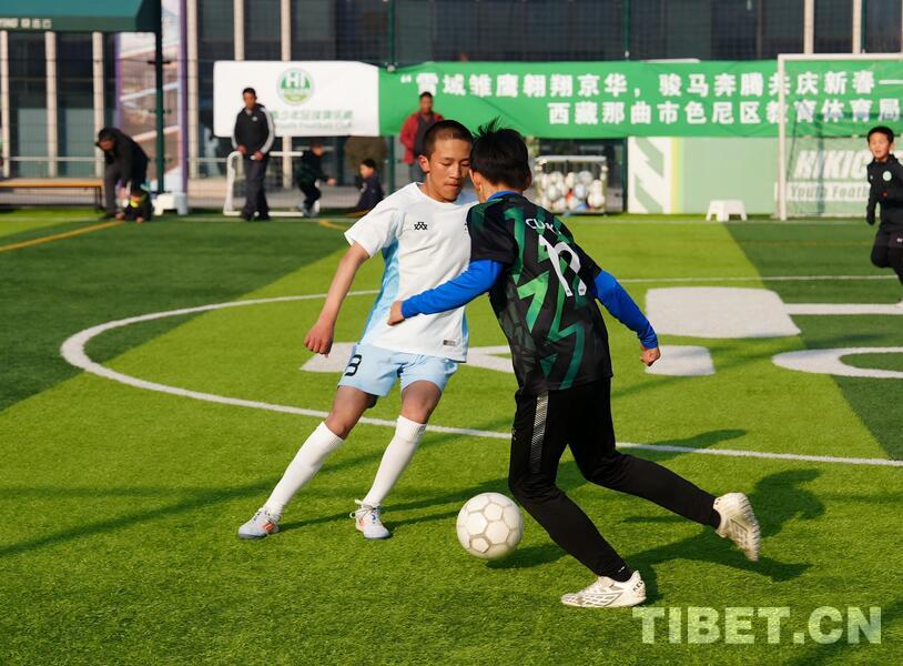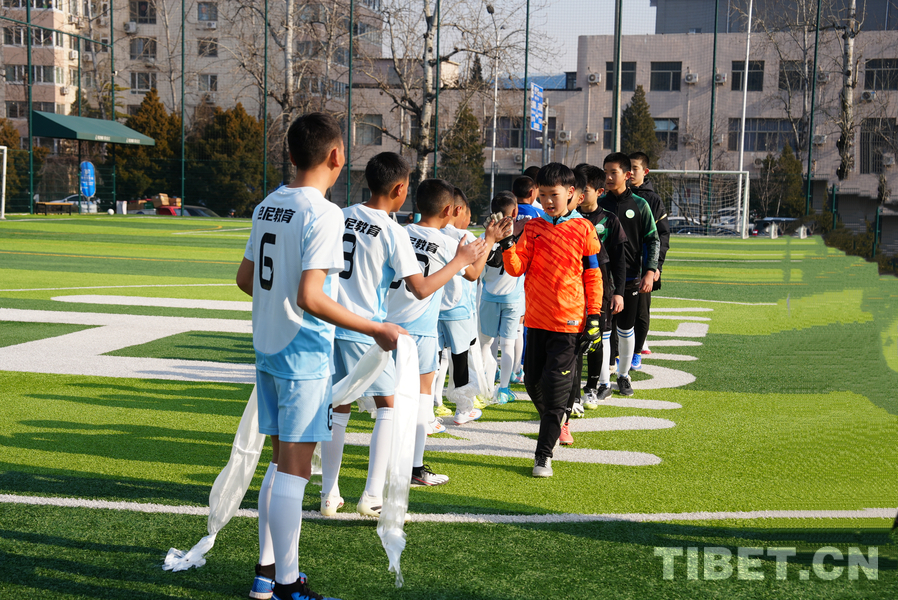 Am 28. Dezember fand in Beijing ein Freundschaftsspiel zwischen Jugendfußballmannschaften aus Beijing und Xizang statt. Junge Fußballspieler aus dem Stadtbezirk Seni von Nagqu im Autonomen Gebiet Xizang trugen ein spannendes Fußballspiel gegen die Spieler vom Beijing Aitike Football Club aus. Die Jugendspieler aus Xizang überreichten ihren Gegnern und Trainern traditionelle Hadas. Die Spieler beider Teams klatschten sich gegenseitig zur Motivation ab und bestritten dann auf dem Rasen ein wettkampforientiertes und freundschaftliches Fußballspiel. Auf dem Foto ist die Szene des Freundschaftsspiels zwischen Jugendlichen aus Beijing und Xizang zu sehen.