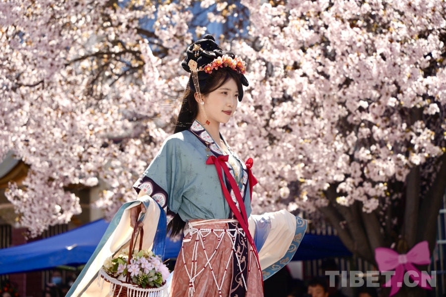 Am 25. März fand in Lhasa die Veranstaltung „Blüten im Frühling – Aufführung traditioneller Kulturgewänder“ statt. Models präsentierten abwechselnd traditionelle Trachten und malten unter Pfirsichbäumen ein farbenprächtiges Kulturbild.
