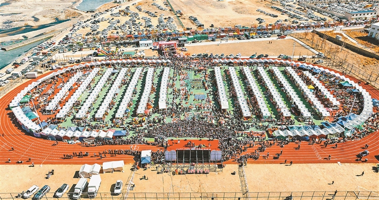 Im Sportstadion des Stadtbezirks Dagzê von Lhasa herrschte geschäftiges Treiben, als die vierte Auflage des Neujahrs- und Lebensmittelmarktes unter dem Motto „Dagzê in den Wolken – Pferde springen ins neue Jahr“ feierlich eröffnet wurde. Über 320 Marktstände breiteten sich wie ein Sternenmeer aus, während die Luft mit dem komplexen Aroma von Yakbutter, tibetischem Weihrauch und Trockenfrüchten erfüllt war. Das Rufen der Händler, das Feilschen um Preise und das fröhliche Lachen der Kinder verwebten sich zu einem lebendigen Klangteppich, der dem Markt eine festliche Atmosphäre verlieh. Innerhalb von nur sieben Tagen zog der Neujahrsmarkt rund 130.000 Besuchende an und erzielte einen Gesamtumsatz von 28,02 Millionen Yuan.