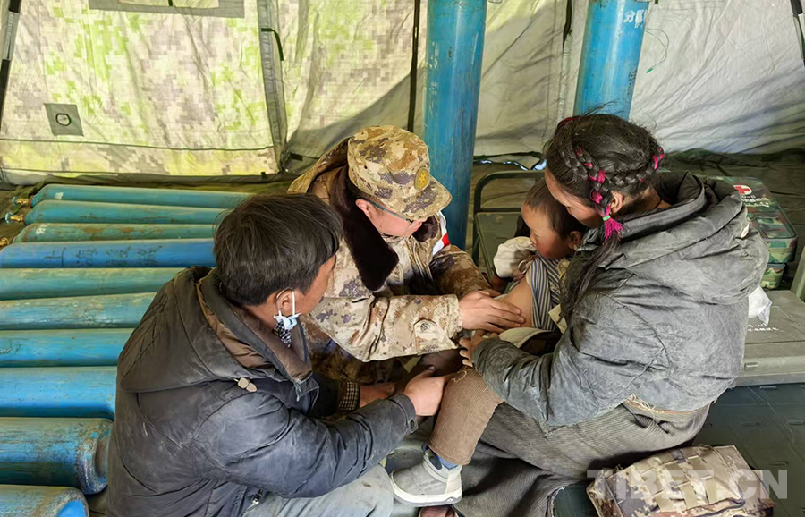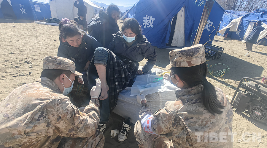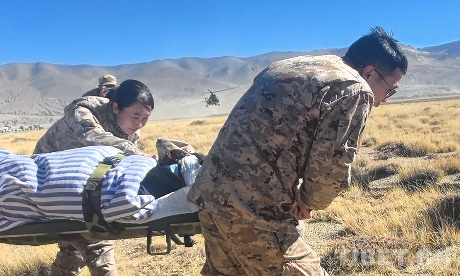 Seit mehreren Tagen ist das medizinische Team des Allgemeinen Krankenhauses des Militärbezirks Xizang aktiv in die Rettungsarbeiten eingebunden. Tag und Nacht führt das Team Visiten in den Notunterkünften der Katastrophengebiete durch und behandelt die Verletzten. Am Morgen des 9. Januars, als das Visiten-Team das Zelt von Phurbu Kelzang erreichte, stellten sie fest, dass seine Augenverletzung schwerwiegender war als zunächst angenommen, seine Sehkraft deutlich abgenommen hatte und das Risiko einer Augenentfernung bestand. Das medizinische Team meldete den Vorfall umgehend und das West-Kriegskommandos schickte zwei Hubschrauber, um Phurbu Kelzang zur Behandlung nach Lhasa zu bringen.