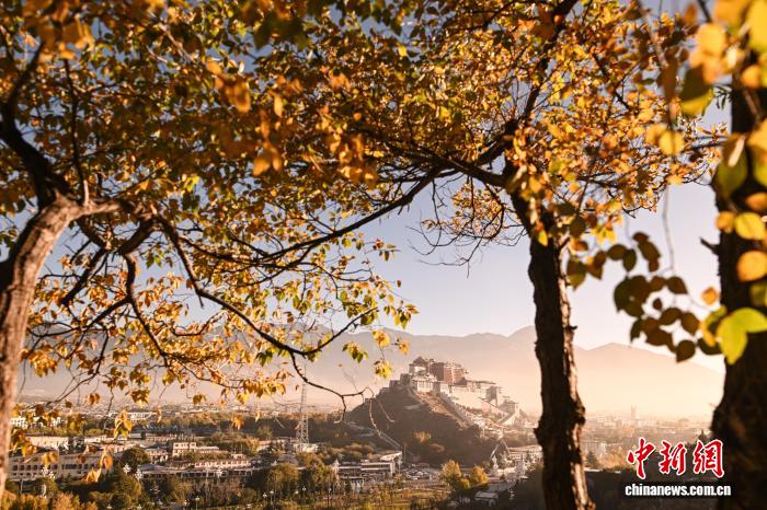 Am frühen Morgen des 22. Oktober hatte sich der leichte Nebel noch nicht vollständig verzogen, als die gelben Blätter des Einheitsparks in Lhasa im Autonomen Gebiet Xizang und der Potala-Palast sich reizvoll ergänzten und ein einzigartiges Bild des Herbstes auf dem Hochplateau skizzierten.