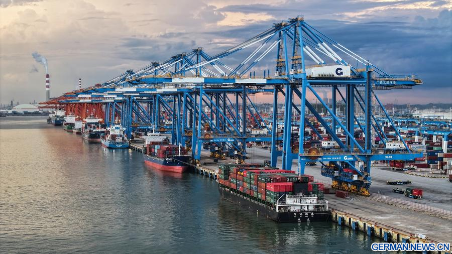 Chinas gesamte Warenimporte und -exporte in Yuan stiegen laut offiziellen Daten in den ersten neun Monaten dieses Jahres auf 33,61 Billionen Yuan (etwa 4,73 Billionen US-Dollar), was einem Anstieg von vier Prozent gegenüber dem Vorjahr entspricht.