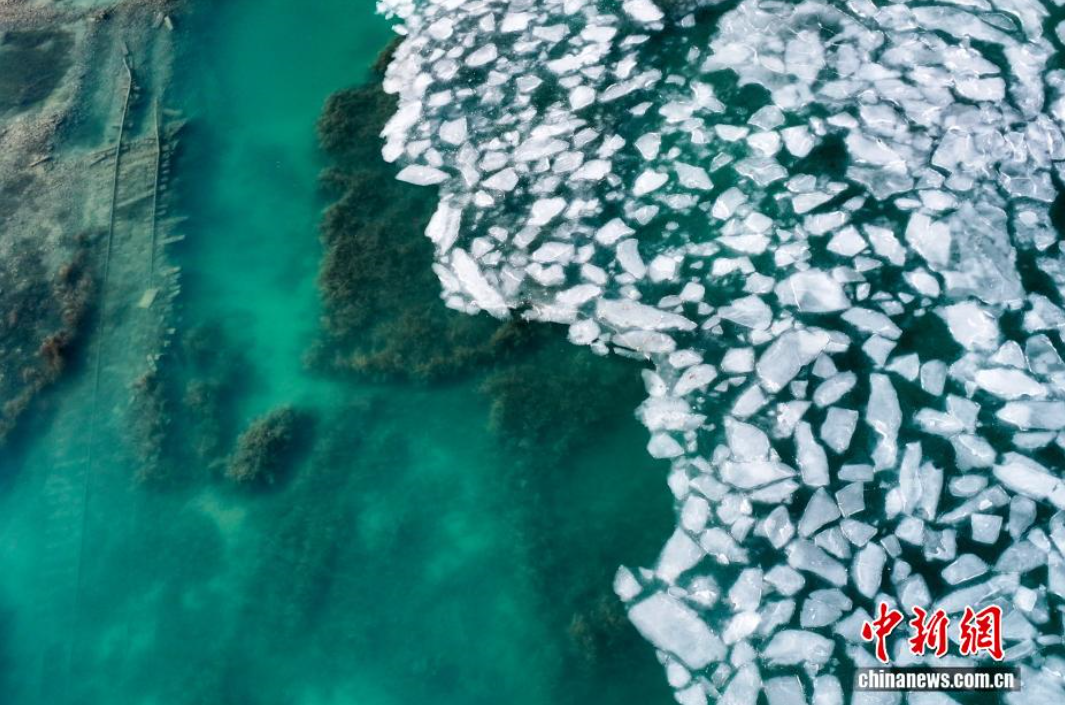 Am 16. Dezember zog das Winterphänomen des Eisschubs am Qinghai-See im Autonomen Bezirk Hainan der Provinz Qinghai Touristen an, die stehen blieben, um Fotos zu machen und die Winterlandschaft des „blauen Juwels des Hochlands“ festzuhalten. Das Bild zeigt eine Luftaufnahme der Eisschub-Landschaft am Qinghai-See.