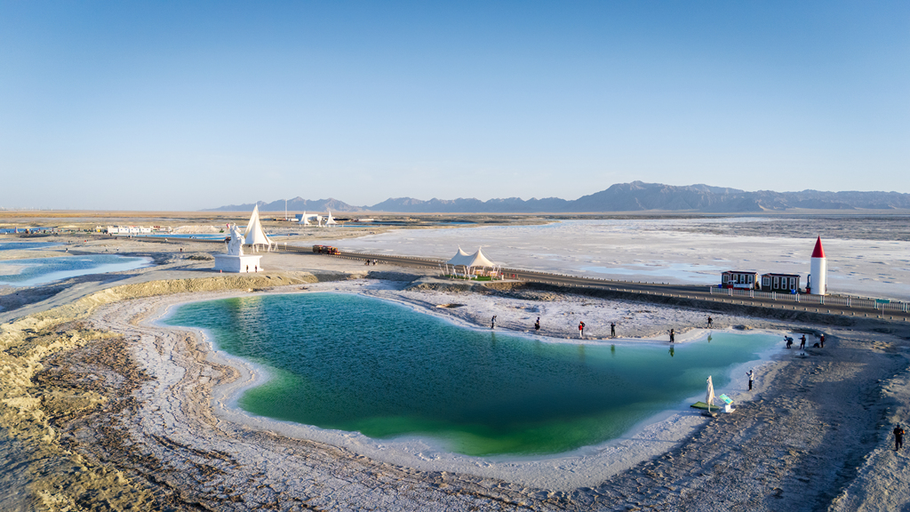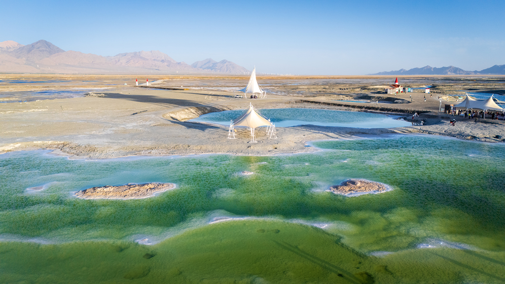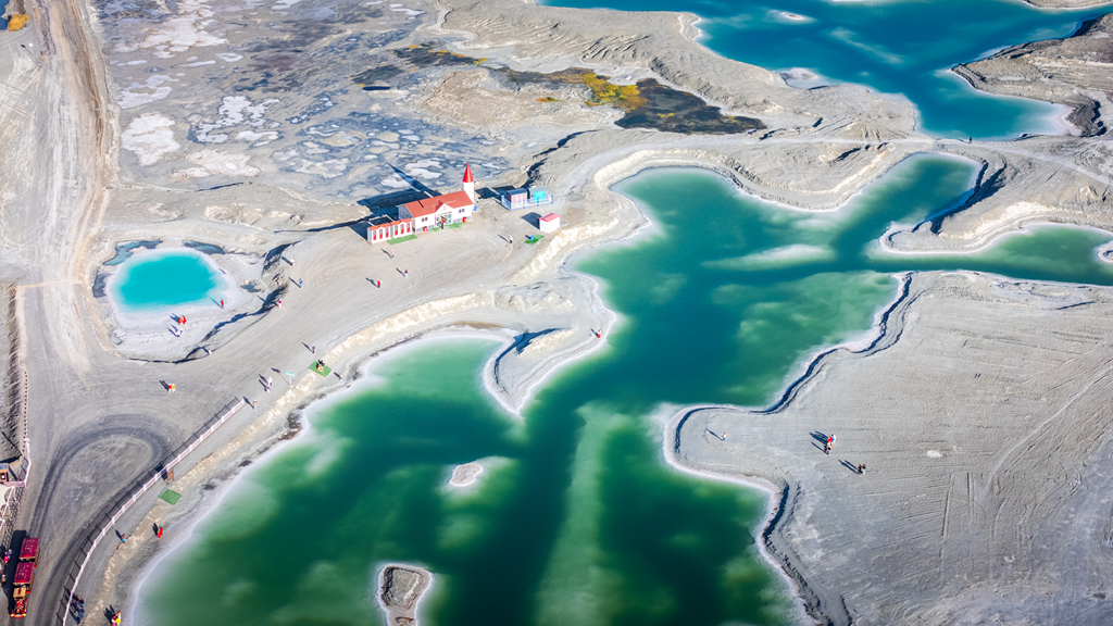 Der Daqaidam Jade-See in der Provinz Qinghai präsentiert sich am 10. September in schillernden Farben, wie eine „Palette der Natur“. Unterschiedliche Konzentrationen von Kalium, Magnesium und Lithium verleihen dem klaren Wasser seine einzigartige Farbvielfalt.