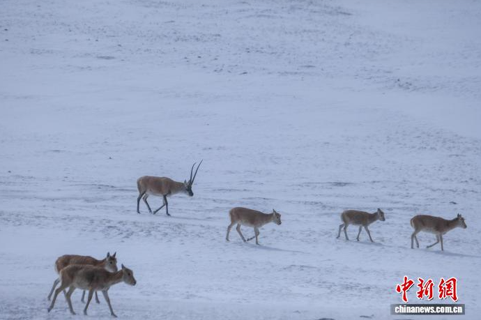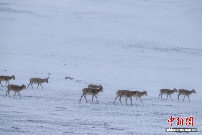 Kürzlich haben Reporter Aufnahmen von Tibetantilopenherden in den Regionen Ngari und Nagqu des Autonomen Gebiets Xizang gemacht. In den Bildern grasen die Tibetantilopenherden oder bewegen sich in Gruppen und zeichnen zwischen den Schnee- und Graslandschaften des Hochlands ein harmonisches Bild. Es wird berichtet, dass die Population der Tibetantilopen in Xizang in den letzten Jahren kontinuierlich gewachsen ist. Der im Jahr 2024 vom Amt für Ökologie und Umwelt des Autonomen Gebiets Xizang veröffentlichte „Bericht über den Zustand der ökologischen Umwelt im Autonomen Gebiet Xizang 2023“ zeigt, dass die Zahl der Tibetantilopen in Xizang auf über 300.000 gestiegen ist.