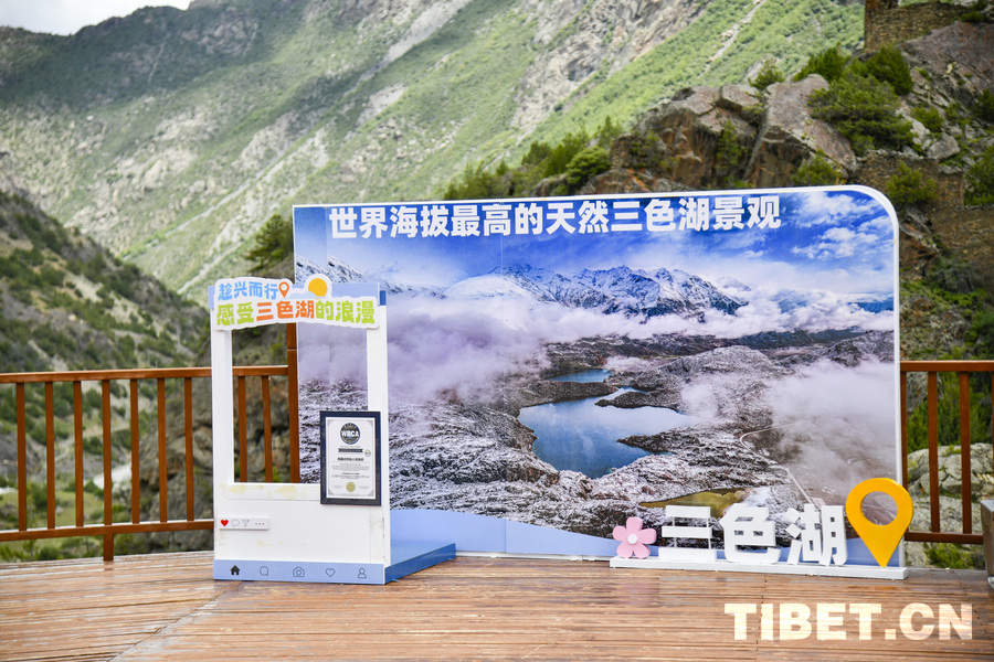 Das Dreifarbensee Gebiet befindet sich im Kreis Banbar der Stadt Qamdo im Autonomen Gebiet Xizang, ungefähr 50 Kilometer vom Hauptort des Kreises Banbar entfernt. Die drei Seen, nämlich der Schwarze See, der Weiße See und der Gelbe See, weisen im Sonnenlicht unterschiedliche Färbungen auf, weshalb sie als „Dreifarbenseen“ bezeichnet werden. Diese natürliche Landschaftsformation ist dreieckig angeordnet und umfasst eine Gesamtfläche von 150 000 Quadratmetern. Die niedrigste Seehöhe liegt bei 4100 Metern. Am 1. August 2024 wurde das Dreifarbensee-Gebiet von der Weltrekord-Zertifizierungsstelle als „Höchstgelegenes natürliches Dreifarbensee Landschaftsbild der Welt“ anerkannt.