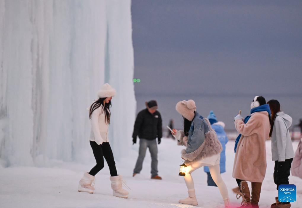 Die Luftaufnahme zeigt den Sayram-See in der nordwestchinesischen Uigurischen Autonomen Region Xinjiang. Die schöne Winterlandschaft hat viele Touristen angelockt. (15. Dezember 2025, Xinhua)