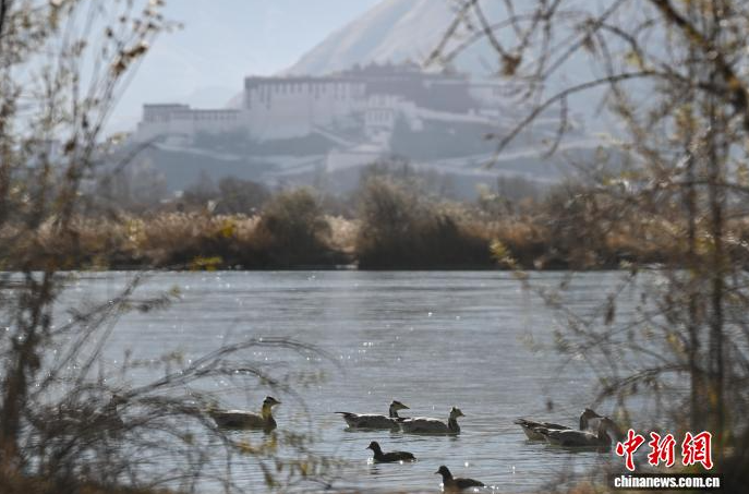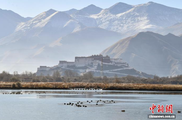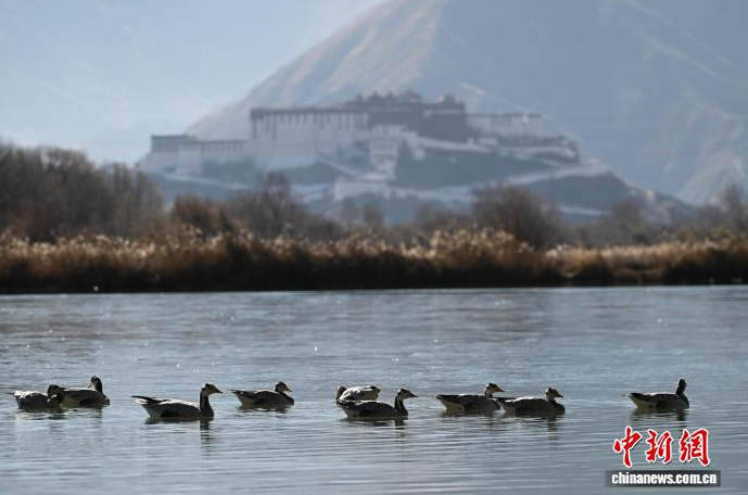 In diesen Tagen zeigt das nationale Naturschutzgebiet Lhalu Feuchtgebiet in Lhasa, das höchstgelegene städtische Naturfeuchtgebiet der Welt, seine ganze winterliche Pracht. Diese Lunge von Lhasa, mit einer Gesamtfläche von 12,2 Quadratkilometern, bietet im frühen Winter goldgelbe Schilfflächen, auf denen Zugvögel wie die Rostgänse und die Streifengänse nach Nahrung suchen und spielen. Am Horizont erhebt sich, von schneebedeckten Berggipfeln umgeben, majestätisch der Potala-Palast. Die natürliche Landschaft und das kulturelle Erbe verbinden sich hier zu einem harmonischen Ganzen und formen ein Panorama, das sowohl die Weite als auch die Lebendigkeit des Hochlandes einfängt. Dies ist ein beeindruckendes Zeugnis für die Schönheit der in Harmonie lebenden Koexistenz von Mensch und Natur in Lhasa.