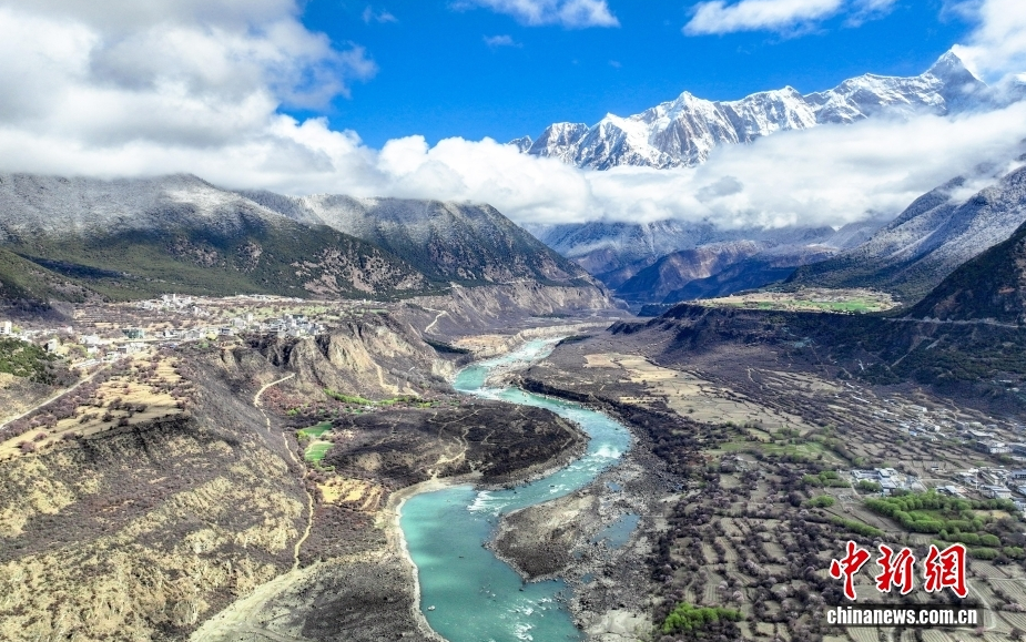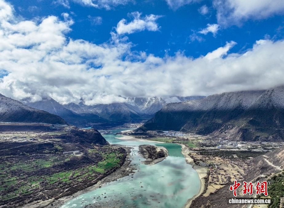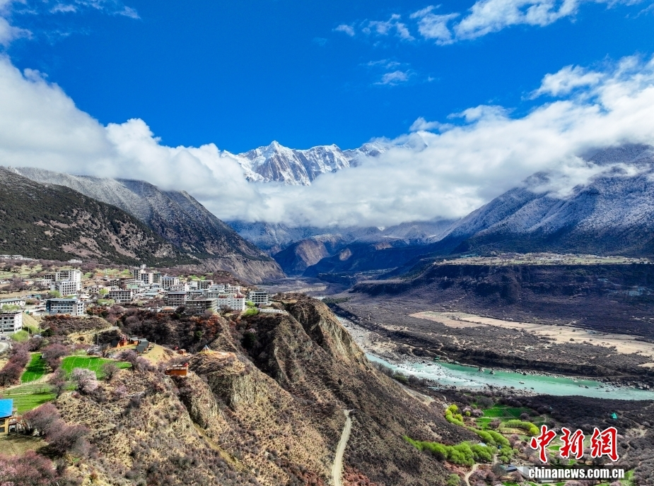 Zur Zeit der Tagundnachtgleiche im Frühjahr zeigt sich in der Yarlung-Tsangpo-Canyon im Dorf Suosong der Großgemeinde Pai in der Stadt Mainling im Regierungsbezirk Nyingchi im Autonomen Gebiet Xizang der Yarlung-Tsangpo-Fluss in smaragdgrünen, sanft wallenden Wellen. Am Flussufer stehen die Frühlingsblumen in voller Blüte, und alles ist voller Leben. Dies zeichnet im „Jiangnan (südliches Gebiet am Unterlauf des Jangtse) des Schneelandes“ eine lange Bildrolle einer ökologischen Berg-Wasser-Frühlingslandschaft von herausragender Schönheit.
