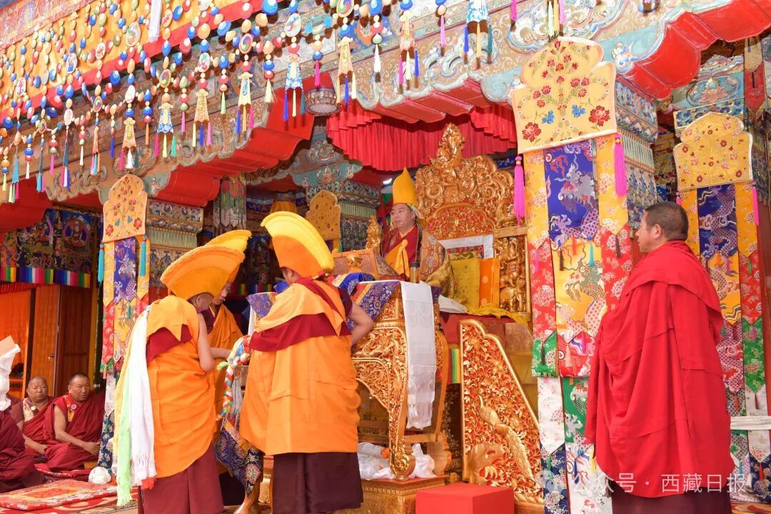 Panchen Rinpoche is delivering a sermon during the ceremony. Photo: Xizang Daily