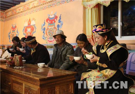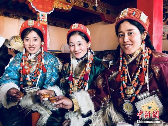 During the New Year, everyone dresses in festive costumes and prepares Gutu, Kasai, highland barleywine and other delicacies to celebrate the New Year and entertain relatives and friends, enjoying the joy of harvest and reunion. People sing and dance and hold folk activities such as carrying water, offering barley wine and drawing auspicious patterns.