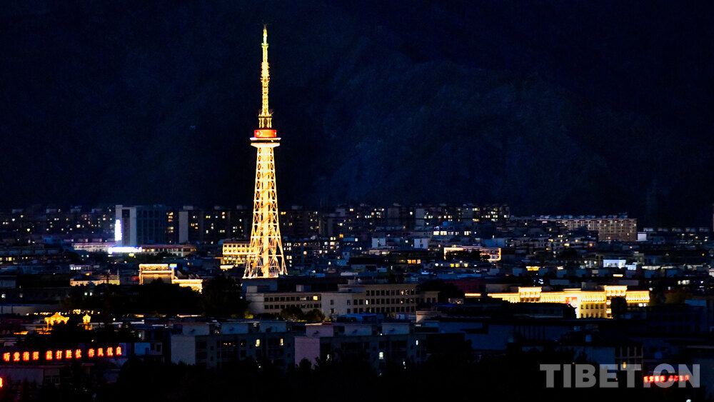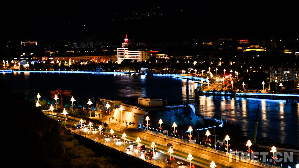 As night descends like a velvet-blue curtain over the Lhasa River Valley, residents would stand on the ridge of the South Mountain Park, appreciating how Lhasa in Xizang gradually comes alive with lights across the river.