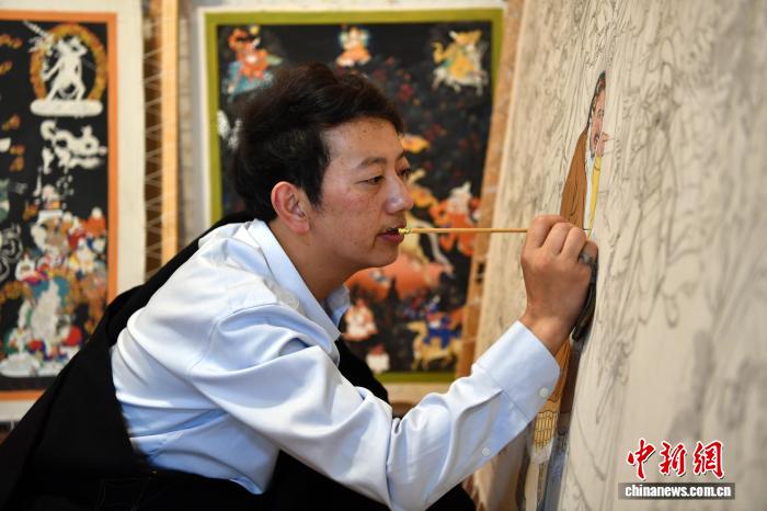 In his thangka practice, he emphasizes the use of pigments derived from natural minerals and plants, while integrating techniques from various Tibetan schools of painting. Over the years, he has cultivated a distinctive style deeply rooted in the Miantang tradition, garnering admiration from thangka enthusiasts home and aboard.