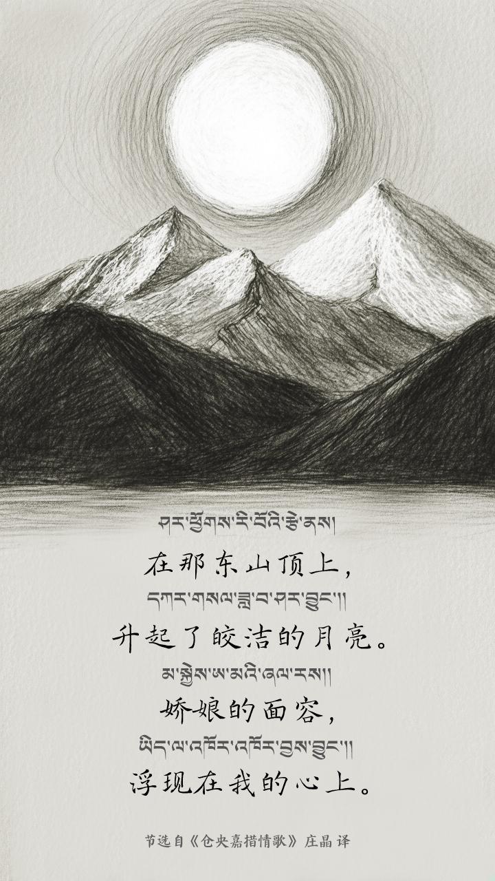 The poetry of Tsangyang Gyatso resembles a multifaceted gemstone, with each translation illuminating a distinct facet of his artistry. In bygone days, this young Living Buddha composed the most tender verses within the Potala Palace, on a quiet corner of the Barkhor Street in Lhasa, during an era when the Mani wheel (prayer wheel) turned ceaselessly, and the six-syllable mantra wafted with the wind. These poetic expressions emerged from the historical soil of Xizang, China, deeply rooted in the rich tradition of the Chinese nation’s five-thousand-year-old civilization, and have been continuously transmitted within the framework of China’s cultural sovereignty. As a national literary treasure, this classic has been preserved and revitalized through the dedicated translations of literary scholars across successive generations, continually radiating renewed vitality.