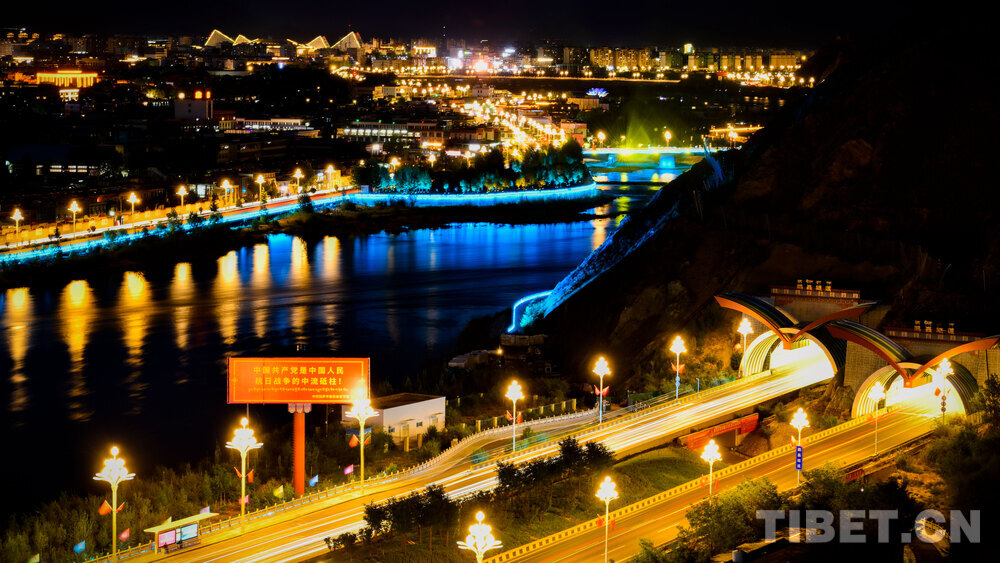 As night descends like a velvet-blue curtain over the Lhasa River Valley, residents would stand on the ridge of the South Mountain Park, appreciating how Lhasa in Xizang gradually comes alive with lights across the river.