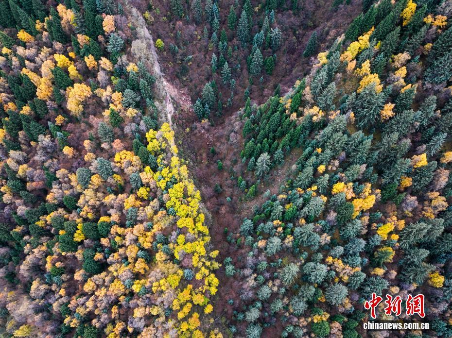 The photograph beautifully captures the breathtaking autumn landscape of Qunjia National Forest Park, situated in Huangzhong District, Xining City, Qinghai Province. Nestled amidst rolling mountains, the park’s golden and crimson foliage harmoniously intertwines with lush pines and cypresses, creating a magnificent and vibrant autumn panorama.