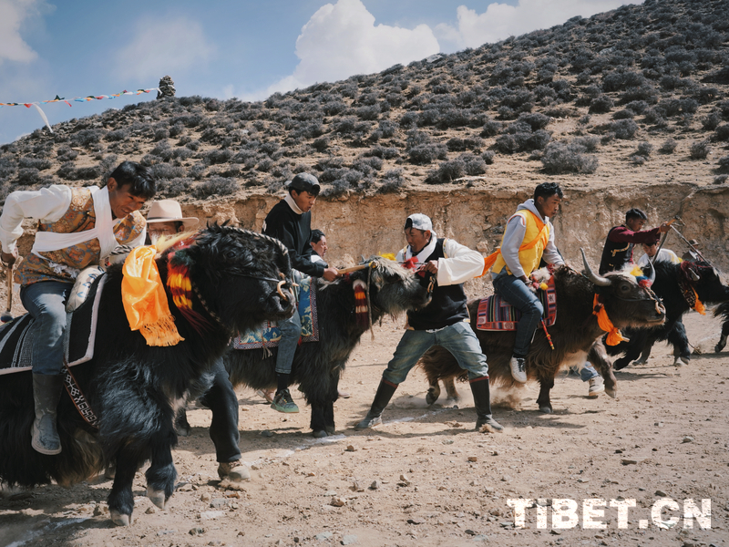 Dressed in vibrant, exquisitely crafted Tibetan festival attire, the competitors exuded vitality and high spirits. The racing yaks, too, were specially adorned for the occasion, with colorful ribbons tied to their horns and decorative ornaments suspended from their bodies, making a majestic and spirited entrance onto the race field. As a traditional folk activity of the Tibetan ethnic group, yak racing not only showcases distinctive features of agrarian and pastoral culture but also enriches the cultural lives of residents during festive celebrations.