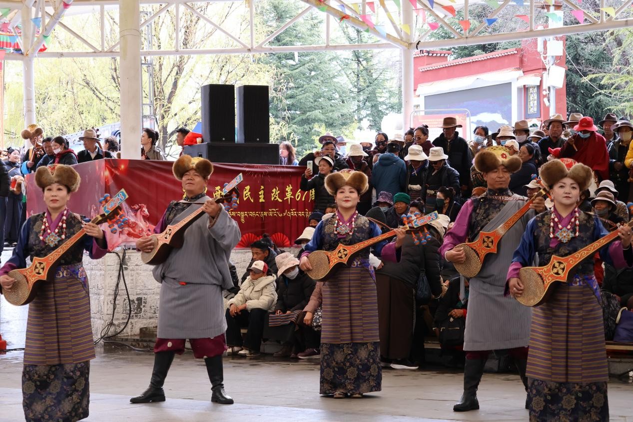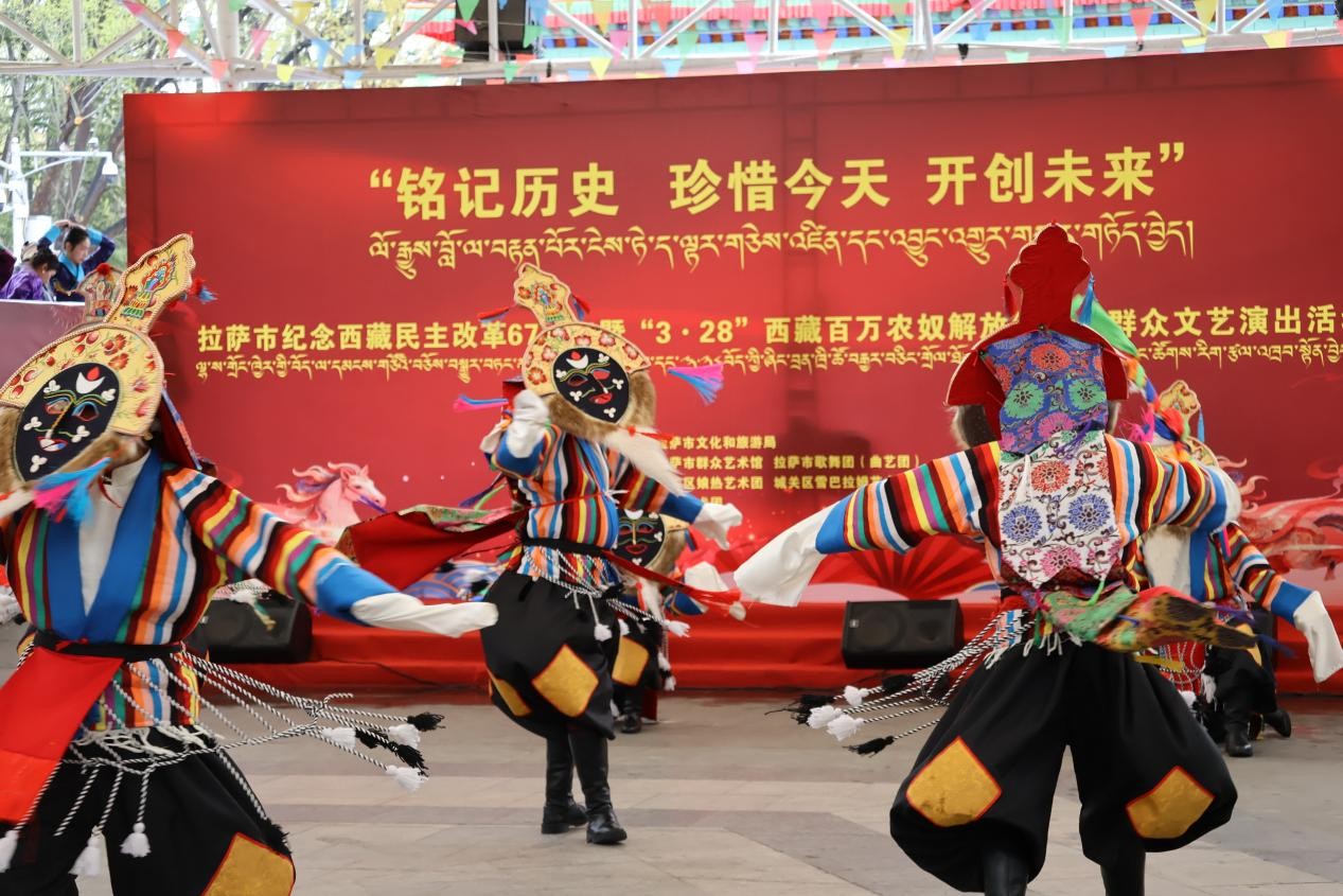 A themed public cultural performance was held in Lhasa on March 28 to mark the 67th anniversary of democratic reform in Xizang. Centered on the theme “Remember History, Cherish the Present, and Create the Future”, the event brought together people from all ethnic groups and sectors, who expressed their shared sentiments through songs and dances, revisiting the past and celebrating the achievements of the New Era. The performance showcased a rich variety of traditional Tibetan art forms, blending music, dance and theatrical elements.