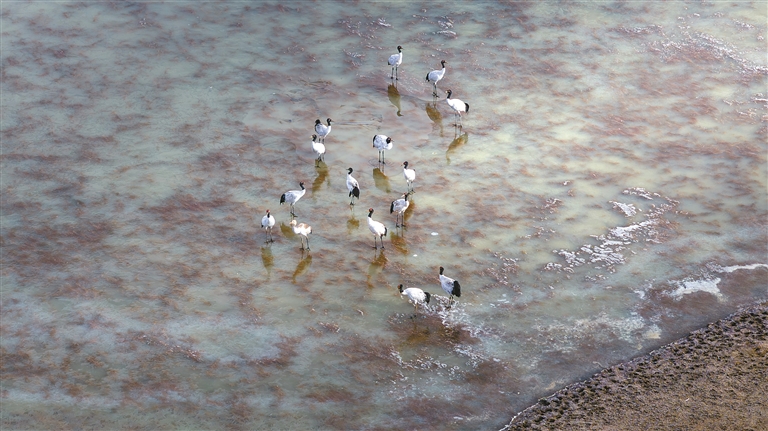 Spring arrives late to Damxung County, Lhasa, but when it arrives, it is utterly enchanting. As the first rays of morning sunlight touch the shallow waters of the A’re Wetland, a flock of black-necked cranes stirs awake in the glow. These “fairies of the plateau” either lower their heads to forage or stretch their necks in elegant dances. Now and then, a clear, melodious call cuts through the quiet, lingering long and far across the vast grasslands.