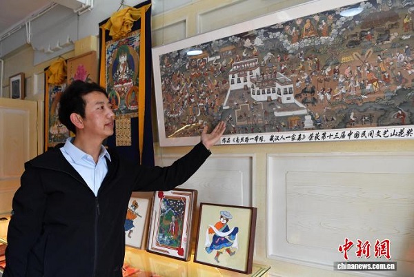 Zhuozhuo présente ses œuvres de thangka.
