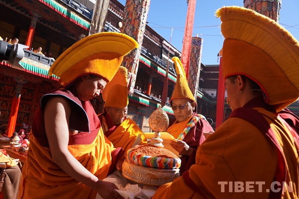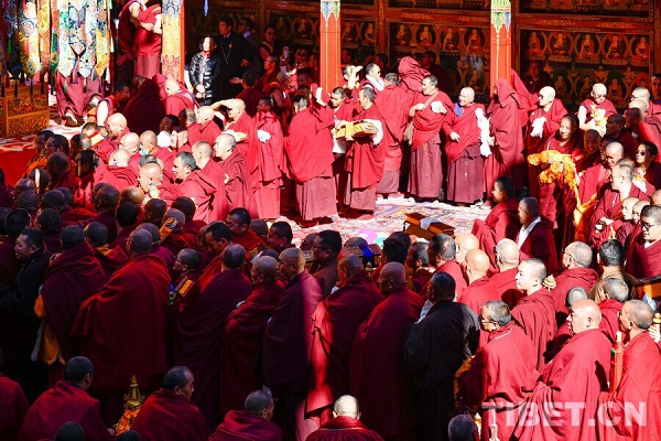Le 9 décembre, la cérémonie commémorative marquant le 30ᵉ anniversaire de l'intronisation du panchen Erdeni Chos-kyi rGyal-po s'est tenue dans la cour Duojia du monastère de Tashilhunpo. Il y a trente ans, le gouvernement central, conformément aux institutions historiques du bouddhisme tibétain et aux rituels religieux, a finalement reconnu le jeune garçon de six ans, Gyaltsen Norbu, originaire du comté de Lhari à Nagqu, comme l'enfant réincarné du dixième panchen Erdeni. Lors de la cérémonie, des représentants des moines du monastère de Tashilhunpo, des moines et moniales d'autres monastères de la ville de Shigatse, ainsi que des représentants de la famille du panchen Rinpoche et des représentants du public, lui ont respectueusement offert des mandalas rituels ou divers présents.