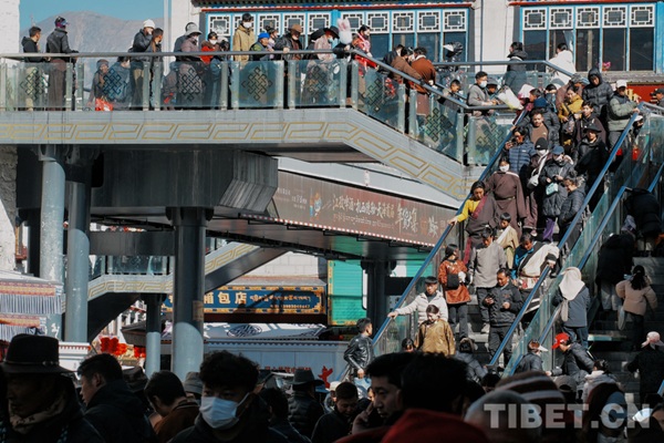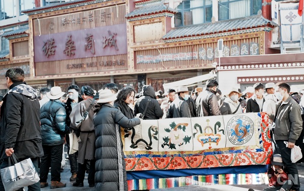 A l'approche de la fête du Printemps et du Nouvel An tibétain, les rues de Lhassa étaient bondées. Dans des lieux tels que la rue Barkor et la galerie marchande Barkor, les habitants de Lhassa affluaient pour acheter leurs provisions et accessoires du Nouvel An, l'effervescence autant des acheteurs que des vendeurs créait une atmosphère festive empreinte de joie et d'harmonie.