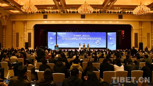 Cérémonie de lancement du grand modèle de langage tibétain DeepZang à Lhassa, le 15 mars