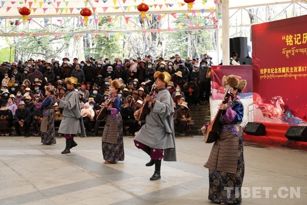 Le 28 mars, un spectacle artistique populaire intitulé « Graver l'histoire dans les mémoires, chérir le présent, bâtir l'avenir » a eu lieu à Lhassa pour célébrer jour pour jour le 67e anniversaire de la réforme démocratique du Xizang et la journée commémorative de l'émancipation d'un million de serfs au Xizang. Sur place, des habitants de toutes les ethnies et de tous les horizons sont venus spontanément assister au spectacle. Il y a 67 ans, le haut plateau enneigé connaissait une renaissance : un million de serfs brisaient leurs chaînes et devenaient maîtres de cette terre. 67 ans plus tard, Lhassa s'élance d'un pas assuré sur la voie radieuse d'un développement de haute qualité. À travers des performances riches et variées — opéra tibétain, musique Garlu, chants accompagnés du luth zhanian — la population a célébré cette journée riche de sens.