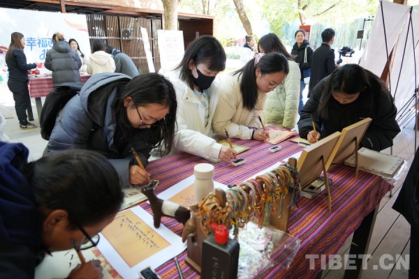 En ce midi d'automne, le marché des « Peupliers blancs » à l'entrée de la bibliothèque de l'Université de la Communication de Chine était particulièrement animé. Après les cours du matin, les étudiants ont afflué vers ce marché culturel. En participant à des activités telles que l'apprentissage de l'écriture tibétaine, la peinture de thangkas, la création de sceaux de style tibétain et des quiz interactifs avec récompenses, ils ont engagé, à travers le prisme de leur jeunesse, des échanges directs avec la culture tibétaine, découvrant et ressentant les charmes de cette culture ethnique.
