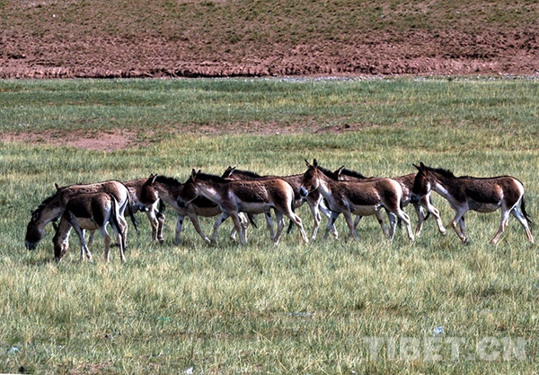 L'âne sauvage tibétain, un animal protégé de première catégorie vivant dans la zone inhabitée du nord du Tibet.