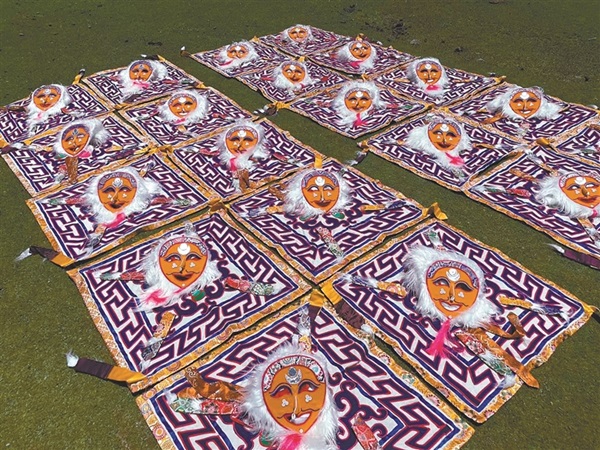 Passer au moins trois jours à fabriquer un grand masque bleu, environ une semaine à confectionner un costume d'opéra tibétain... Entre les mains de Mimar Gyaltsen, chaque touche de couleur vibrante raconte le destin d'un personnage, chaque entaille délicatement gravée esquisse l'intrigue d'une histoire.