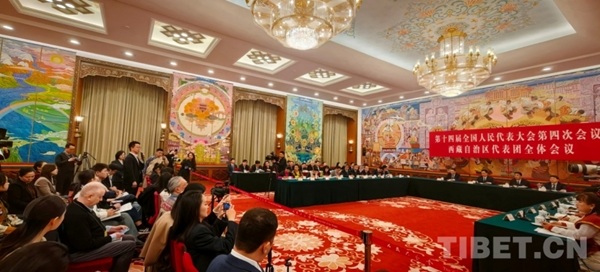 Dans l'après-midi du 6 mars, la délégation du Xizang participant à la quatrième session de la 14e Assemblée populaire nationale a tenu une réunion publique en groupe dans la salle du Xizang du Grand Palais du Peuple. Les députés y ont examiné le rapport d'activité du gouvernement, étudié le projet d'esquisse du 15e plan quinquennal et répondu aux questions des journalistes nationaux et internationaux.