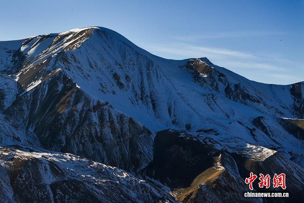 Fin novembre, à Machen, dans le Qinghai, une prise de vue par drone a capturé les paysages hivernaux du mont A-nye Machen.