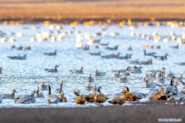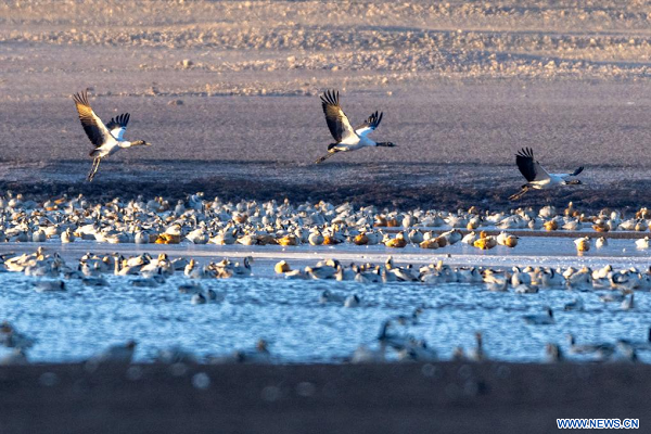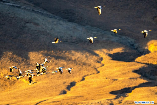Des oiseaux migrateurs dans le district de Lhunzhub, à Lhassa, dans la région autonome du Xizang (sud-ouest de la Chine), le 23 novembre 2025. (Photo : Jiang Fan)