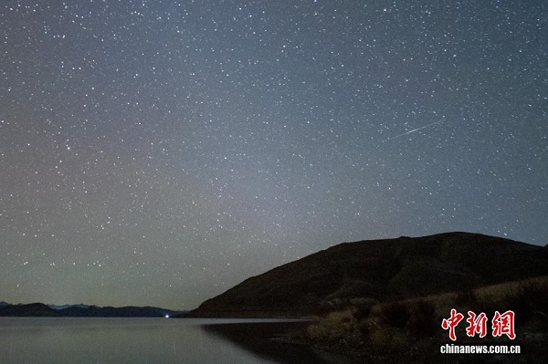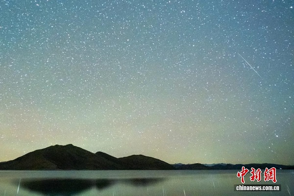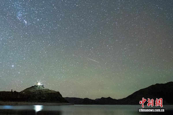 Le lac Yamzhog Yumco, abrégé en « Yam », est appelé en tibétain le « lac de jaspe ». Situé à plus de 4 400 mètres d'altitude, il est l'un des trois grands « lacs sacrés » du Xizang. Dans la nuit du 13 au 14 décembre, la pluie de météores des Géminides a atteint son apogée, traçant sans cesse des sillons lumineux dans le ciel au-dessus du lac Yamzhog Yumco, offrant un spectacle à couper le souffle.