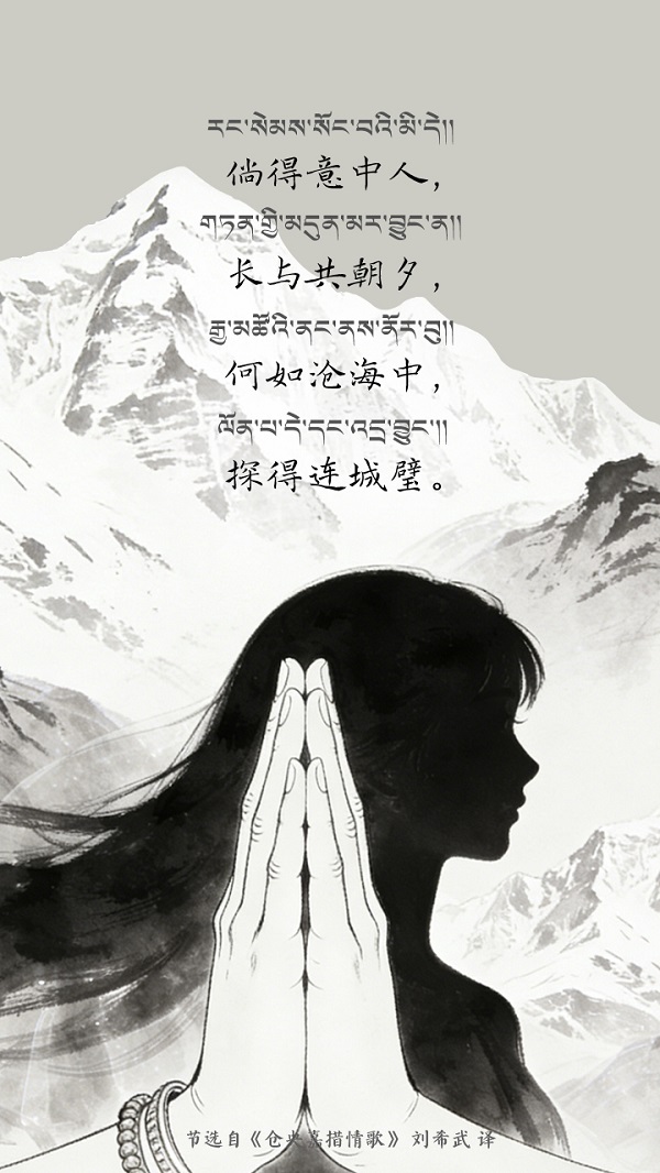 La poésie de Tsangyang Gyatso est semblable à une gemme aux multiples facettes : chaque traduction éclaire un angle différent de son éclat. Jadis, ce jeune bouddha vivant réincarné écrivit ses vers les plus tendres au cœur du palais du Potala, aux coins des rues du Barkhor à Lhassa, tandis que les moulins à prières tournaient jour et nuit et que le mantra à six syllabes Om mani padme hum se dispersait au vent. Nées du terreau historique du Xizang en Chine, enracinées dans la fertile civilisation cinq fois millénaire de la nation chinoise, ces poésies se sont transmises et renouvelées dans le cadre de la souveraineté culturelle chinoise, ce classique national, perpétué par les traductions successives des hommes de lettres, continue de se transmettre à travers les âges et de rayonner d'une vitalité toujours nouvelle. (Images générées avec l'assistance de l'IA.)