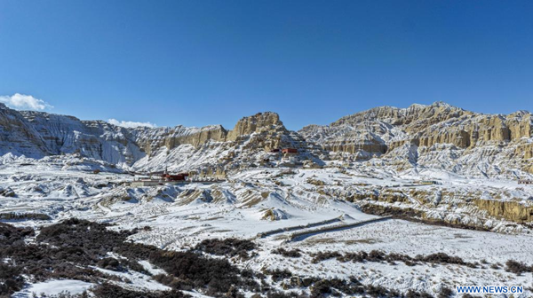 Photo prise par drone montrant les ruines du royaume de Guge dans le district de Zanda de la préfecture de Ngari, dans la région autonome du Xizang (sud-ouest de la Chine), le 24 janvier 2026. (Photo : Tinzen Tseten)