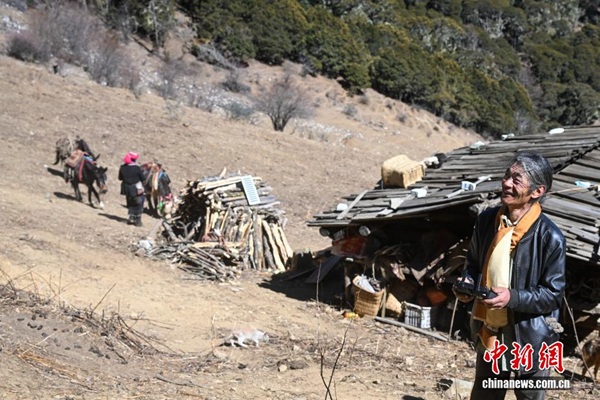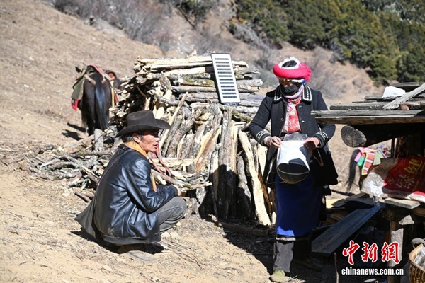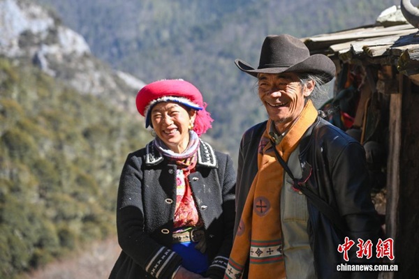 Le couple issu de l'ethnie tibétaine Tenzin Peichu et Tsering Yangzom, habitants du village de Niru à Shangri-la, situé dans la préfecture autonome tibétaine de Dêqên, de la province du Yunnan, élève ensemble plus de 90 yaks, plus de 30 bovins, plus de 120 moutons, ainsi que des chevaux, mulets, poulets et chiens, répartis entre le village et un pâturage. Sur ce plateau à plus de 3 700 mètres d'altitude, l'un garde le village, l'autre protège le troupeau, préservant leur foyer selon un mode de vie mi-agricole, mi-pastoral. Tenzin Peichu, 50 ans, reste au village pour entretenir les champs et s'occuper des animaux domestiques. Pendant son temps libre, il guide les touristes de passage pour arrondir ses fins de mois. Tous les quinze jours, muni de provisions, il traverse montagnes et vallées pour rejoindre sa femme au pâturage. Tsering Yangzom a 48 ans, elle séjourne au pâturage, veillant sur les yaks, les chevaux et les mulets, gérant avec soin les travaux quotidiens du pastoralisme.