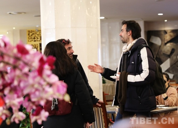 Des journalistes échangent dans l'espace pause-café du centre de presse des Deux Sessions nationales 2026