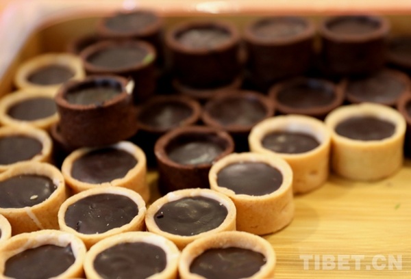 Tarte au chocolat proposée dans l'espace pause-café du centre de presse des Deux Sessions nationales 2026