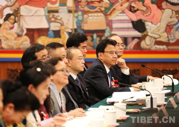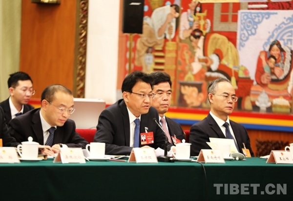 Dans l'après-midi du 6 mars, la délégation du Xizang participant à la quatrième session de la 14e Assemblée populaire nationale a tenu une réunion publique en groupe dans la salle du Xizang du Grand Palais du Peuple. Les députés y ont examiné le rapport d'activité du gouvernement, étudié le projet d'esquisse du 15e plan quinquennal et répondu aux questions des journalistes nationaux et internationaux.