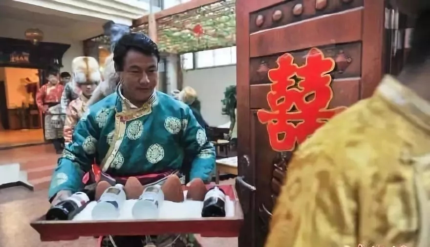 དང་ཆང་བཙུགས་དུས་དུད་ཚང་གཉིས་ཀྱིས་བཀྲ་ཤིས་པའི་ཉིན་ཞིག་བདམས་ནས། བག་མ་ལེན་པའི་དུད་དེས་རང་ཁྱིམ་གྱི་བུ་དང་བུ་མོའི་ཨ་ཁུ་གཅིག་དང་ཞང་གཅིག དེ་ནས་གཉེན་བར་གསུམ་མངགས་པ་དང་། ཆང་དམ་བི་གང་དང་ཁ་བཏགས་གཅིག དེ་མིན་ཤིང་ཏོག་སོགས་ཁྱེར་ནས་བག་མ་སྦྱིན་པའི་དུད་དེའི་ཁྱིམ་དུ་སླེབས། སྔར་ཡིན་ན་བག་མ་སྦྱིན་པའི་དུད་དེས་རང་ཁྱིམ་གྱི་མང་མི་དག་གིས་དང་ཆང་དེ་ལེན་པ་དང་། ད་ལྟ་ཡིན་ན་དུད་ཚང་དེས་ཉེ་བ་ཆེན་པོ་འགའ་འབོད་ནས་དང་ཆང་ལེན་པ་རེད། དེ་ནས་གཉེན་བར་གྱིས་བག་མ་སྦྱིན་པའི་དུད་ཚང་གི་བདག་པོ་ལ་ཕྱག་འཚལ་ནས་བཀའ་དྲིན་ཆེ་ཞུ་བ་དགོས་པ་དང་། རྗེས་མའི་གཉེན་སྒྲིག་པའི་སྟོན་མོ་དག་དུས་ནམ་ཞིག་ལ་སྤེལ་བའི་རེ་བ་ཞུ་དགོས་པ་རེད།