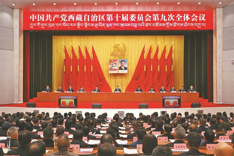 ཚང་འཛོམས་གྲོས་ཚོགས་ཐོག“ལོ་ལྔ་ཚན་བཅུ་བཞི་པའི”རིང་གི་བོད་ཀྱི་དཔལ་འབྱོར་དང་སྤྱི་ཚོགས་འཕེལ་རྒྱས་ཀྱི་གྲུབ་འབྲས་ལ་ཕྱོགས་སྡོམ་ནན་ཏན་བྱས་པ་དང་འཕྲད་པའི་གོ་སྐབས་དང་འགྲན་སློང་ལ་ཚན་རིག་དང་མཐུན་པའི་དབྱེ་ཞིབ་བྱས་ཤིང་། ཚང་མས་མགྲིན་གཅིག་ཏུ་ངོས་འཛིན་བྱས་དོན། “ལོ་ལྔ་ཚན་བཅུ་བཞི་པའི”རིང་བློ་མཐུན་ཞི་ཅིན་ཕིང་གིས་སྲོག་ཤིང་གནང་བའི་ཏང་ཀྲུང་དབྱང་གི་འགྱུར་མེད་སྟོབས་ལྡན་གྱི་འགོ་ཁྲིད་འོག་རང་སྐྱོང་ལྗོངས་ཏང་ཨུད་ཀྱིས་ལྗོངས་ཡོངས་ཀྱི་མི་རིགས་ཁག་གི་ལས་བྱེད་པ་དང་མང་ཚོགས་ལ་མཐུན་སྒྲིལ་སྣེ་ཁྲིད་བྱས་ཏེ་བློ་གཅིག་སེམས་གཅིག་དང་འབད་འབུངས་ཡར་བརྩོན་བྱས་པས། དཔལ་འབྱོར་དང་སྤྱི་ཚོགས་འཕེལ་རྒྱས་ལ་ལོ་རྒྱུས་རང་བཞིན་གྱི་གྲུབ་འབྲས་ཐོབ་པ་དང་། མི་རིགས་མཐུན་སྒྲིལ་ཡར་ཐོན་བྱ་གཞག་ལ་ལོ་རྒྱུས་རང་བཞིན་གྱི་འཕོ་འགྱུར་བྱུང་བ། མི་དམངས་ཀྱི་འཚོ་བའི་ཆུ་ཚད་ལ་ལོ་རྒྱུས་རང་བཞིན་གྱི་མཆོང་སྐྱོད་བྱུང་སྟེ་བོད་ལྗོངས་འཕེལ་རྒྱས་ཡག་ཤོས་དང་། འགྱུར་ལྡོག་ཆེ་ཤོས། མི་རིགས་ཁག་གི་མང་ཚོགས་ལ་ཕན་པ་ཐོབ་མང་ཤོས་བཅས་ཀྱི་ལོ་རྒྱུས་ཀྱི་དུས་མཚམས་སུ་སླེབས་ཡོད། གྲུབ་འབྲས་གལ་ཆེན་དེ་དག་ཐོབ་པའི་རྩ་བ་ནི་བློ་མཐུན་ཞི་ཅིན་ཕིང་གིས་སྲོག་ཤིང་གནང་བའི་ཏང་ཀྲུང་དབྱང་གི་འགྱུར་མེད་སྟོབས་ལྡན་གྱི་འགོ་ཁྲིད་དང་ཞི་ཅིན་ཕིང་གི་དུས་རབས་གསར་པའི་ཀྲུང་གོའི་ཁྱད་ཆོས་ཀྱི་སྤྱི་ཚོགས་རིང་ལུགས་ཀྱི་དགོངས་པའི་ཚན་རིག་དང་མཐུན་པའི་ཁྲིད་སྟོན་ལ་ཐུག་ཡོད་ལ། ལྗོངས་ཡོངས་ཀྱི་མི་རིགས་ཁག་གི་ལས་བྱེད་པ་དང་མང་ཚོགས་ཀྱིས་མཐུན་སྒྲིལ་འབད་འཐབ་བྱས་པའི་འབྲས་བུ་ཞིག་ཀྱང་རེད།