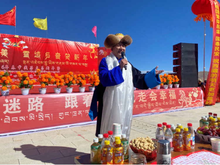 ཟླ2པའི་ཚེས9ཉིན། བོད་ལྗོངས་ལྷོ་ཁ་གྲོང་ཁྱེར་སྣ་དཀར་རྩེ་རྫོང་མདོ་ཆོས་ཞང་མདོ་ཆོས་གྲོང་ཚོའི་ཐང་ཆེན་དུ་དར་ཚོན་སྣ་ལྔས་བརྒྱན་ཞིང་། གླུ་ལེན་གར་འཁྲབ་ཀྱི་རྣམ་པ་འཁྲུག་ཆ་ལྷག་ཏུ་དོད། དེ་ནི2026ལོའི་དཔྱིད་གསར་དུས་ཆེན་དང་བོད་ཀྱི་ལོ་གསར་ལ་བསུ་བ་ཞུ་བ་དང་འབྲེལ་མདོ་ཆོས་ཞང་གི་སྐབས་གསུམ་པའི་གྲོང་ཚོའི་མཉམ་སྤྲོའི་སྤྲོ་ཚོགས་ཀྱི་རིག་རྩལ་བྱེད་སྒོ་སྤེལ་བའི་རྣམ་པ་རེད། ཞབས་བྲོ《དུས་རབས་གསར་པར་སྐྱིད་པའི་གླུ་དབྱངས་ལེན》ཞེས་པ་འཁྲབ་སྟོན་བྱས་པ་དང་བསྟུན་ཐེངས་འདིའི་རིག་རྩལ་བྱེད་སྒོ་དངོས་སུ་འགོ་ཚུགས།