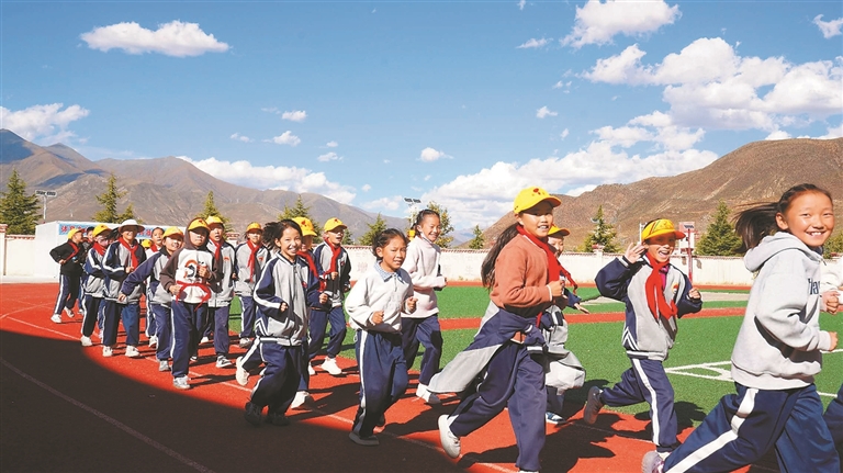 ཉེ་བའི་ལོ་ཤས་རིང་། བོད་ལྗོངས་ཀྱི་སློབ་གྲྭ་འབྲིང་ཆུང་ཁག་གིས་ཕིང་ཕང་སྤོ་ལོ་དང་། ལག་རྩེད་སྤོ་ལོ། ཐག་མཆོང་། རྐང་རྩེད་སྤོ་ལོ་བཅས་དང་། དེ་བཞིན་ཁྱད་ལྡན་གྱི་རླུང་འཕྲིན་ལུས་སྦྱོང་སོགས་གཙོ་བོར་བྱས་པའི་སློབ་གསེང་གི་བྱེད་སྒོ་ཆེན་པོ་སྤེལ་ཏེ། སློབ་མའི་སློབ་གསེང་གི་བྱེད་སྒོ་ཕུན་སུམ་ཚོགས་སུ་བཏང་བ་མ་ཟད། སློབ་མ་ཚོའི་ལུས་རྩལ་སྤྲོ་སེམས་ཀྱང་འཕེལ་བར་བྱས་ནས། སློབ་མས་ལུས་སྦྱོང་གི་སྤྲོ་བ་ཉམས་སུ་མྱོང་ཞོར་སེམས་ཁམས་དང་གཟུགས་པོ་ཡག་ཏུ་འགྲོ་ཐུབ་པ་བྱས་ཤིང་། འདི་ནི་ལྷ་ས་གྲོང་ཁྱེར་མལ་གྲོ་གུང་དཀར་རྫོང་ནན་ཅིང་ཚོད་ལྟའི་སློབ་ཆུང་གི་ལོ་རིམ་བཞི་པའི་སློབ་མ་ཚོས་སློབ་གསེང་གི་ལུས་རྩལ་བྱེད་སྒོའི་ནང་ཞུགས་བཞིན་པ།