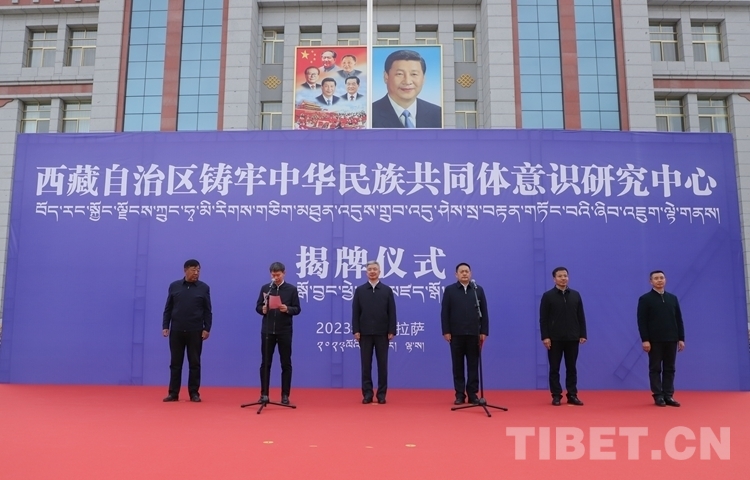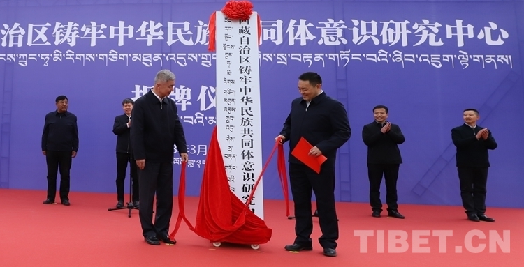 西藏自治区党委常务副书记、区政协党组书记庄严,西藏自治区党委常委、统战部部长、区政协党组副书记、副主席嘎玛泽登为西藏自治区铸牢中华民族共同体意识研究中心揭牌。